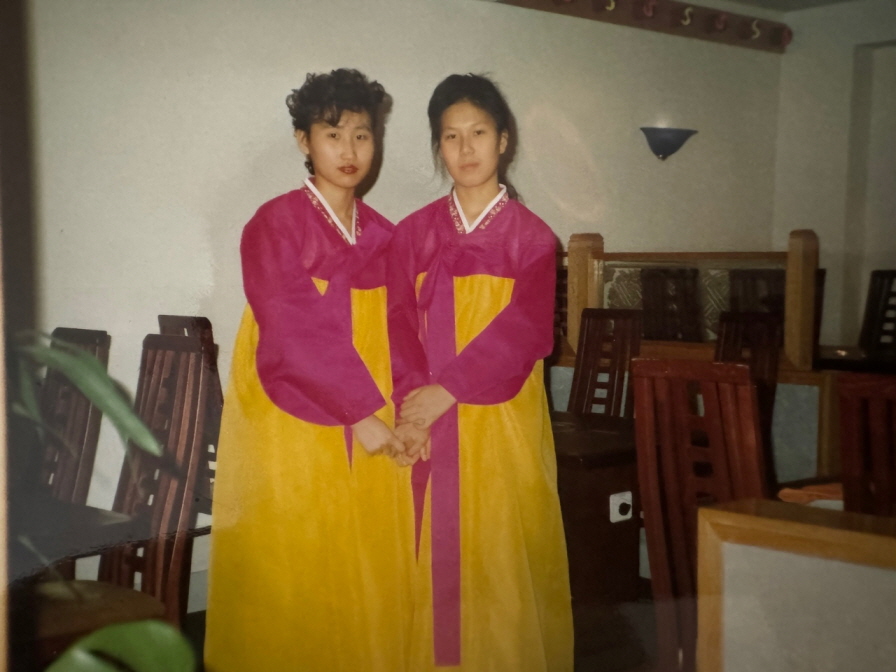 "A glimpse of the restaurant and a waitress in June 1990. The entrance faced Kingly Street, and the waitress is dressed in a traditional hanbok."